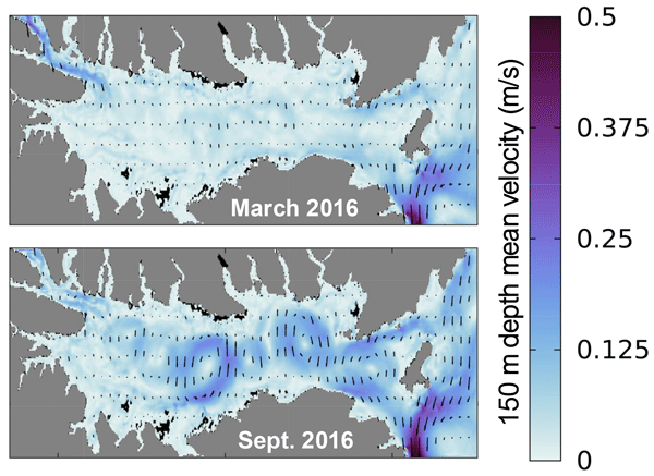 Here, we develop and run a high-resolution ocean model of Jones Sound from 2003–2016 and characterize circulation into, out of, and within the sound as well as associated sea ice and productivity cycles. Atmospheric and ocean warming drives sea ice decline, which enhances biological productivity due to the increased light availability. These results highlight the utility of high-resolution models in simulating complex waterways and the need for sustained oceanographic measurements in the sound.