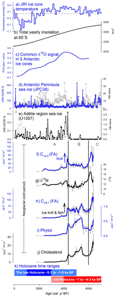 Erin L. McClymont, Michael J. Bentley, Dominic A. Hodgson, Charlotte L. Spencer-Jones, Thomas Wardley, Martin D. West, Ian W. Croudace, Sonja Berg, Darren R. Gröcke, Gerhard Kuhn, Stewart S. R. Jamieson, Louise Sime, and Richard A. Phillips