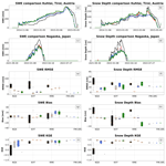 The sites were selected to ensure geographic and climatic diversity, spanning various regions that are exposed to a variety of snow climates (Sturm and Liston, 2021), (see Tables 1 and 2). The characteristics of the site vary widely, with elevations ranging from lowland areas such as Sodankylä (179 m) to high alpine environments such as Weissfluhjoch (2540 m). Annual and winter precipitation varies significantly across different locations, ranging from relatively dry areas like Torgnon, with an annual average of 794 mm, to much wetter regions such as Nagaoka, which receives 2773 mm per year. For this comparative analysis, winter is defined as the meteorological winter in the northern Hemisphere, spanning the months of December through February. Air temperature ranges reflect this environmental diversity, encompassing cold alpine regions, temperate meadows, and wetlands.