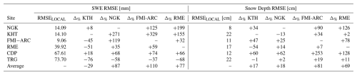 Part of this research was performed under the Memorandum of Cooperation between CIMA Research Foundation (Italy) and the Snow and Ice Research Center, National Institute for Earth Science and Disaster Resilience (Japan). KA acknowledges funding from the ERC-2022-ADG under grant agreement GLACMASS and an ESA CCI Research Fellowship (PATCHES project). MG acknowledges funding from the NASA Understanding Changes High Mountain Asia Program. The Torgnon (Italy) and Col de Porte (France) sites are part of the International Network for Alpine Research Catchment Hydrology (INARCH).