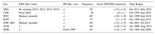 Measurement errors used in the data assimilation process (see Sect. 2.3) were assigned according to the specific instrumentation utilized at each site, drawing from a combination of expert knowledge and relevant literature (see Table A1 in the Appendix).