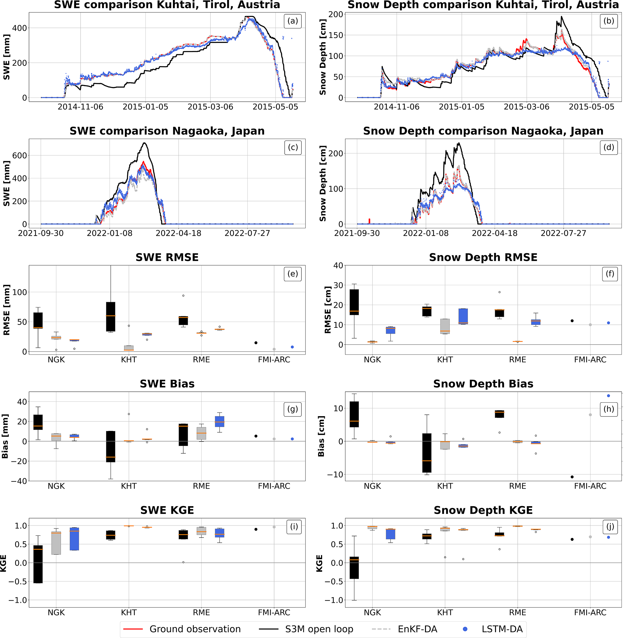 Part of this research was performed under the Memorandum of Cooperation between CIMA Research Foundation (Italy) and the Snow and Ice Research Center, National Institute for Earth Science and Disaster Resilience (Japan). KA acknowledges funding from the ERC-2022-ADG under grant agreement GLACMASS and an ESA CCI Research Fellowship (PATCHES project). MG acknowledges funding from the NASA Understanding Changes High Mountain Asia Program. The Torgnon (Italy) and Col de Porte (France) sites are part of the International Network for Alpine Research Catchment Hydrology (INARCH).