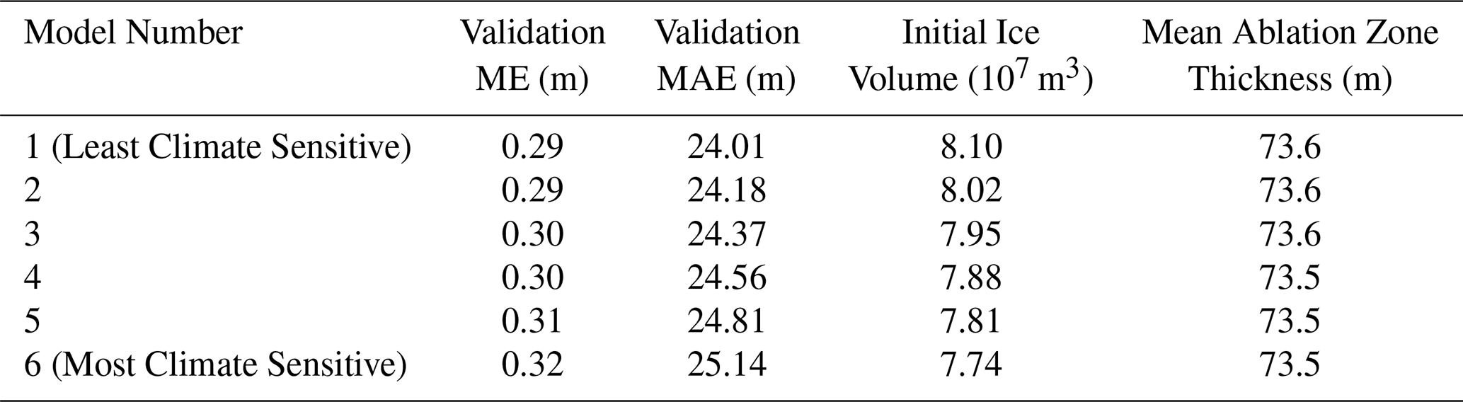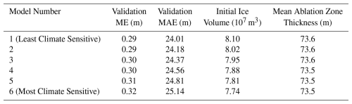 Table 4Ice thickness inversion results for each model ensemble member.