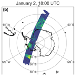 Figure 1 shows an example case of geolocated ERA5 snowfall rate (2 January 2020, 18:00 UTC) in comparison to the corresponding simulated WIVERN and CloudSat retrievals. Despite its sparse sampling within its 800 km swath, the WIVERN footprint samples all 0.25° grid points within the swath, with an obvious benefit compared with the CloudSat nadir observations.