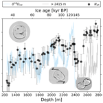 The EDML ice core chronology ends at 2415 m depth (Ruth et al., 2007). Below this depth, due to large-scale disturbances in the ice stratigraphy, the integrity of the δ18O record is lost (Ruth et al., 2007; Faria et al., 2010a). For this chapter, we divide the record into a dated (1255–2415 m) section and a non-dated (2415–2771 m) section.