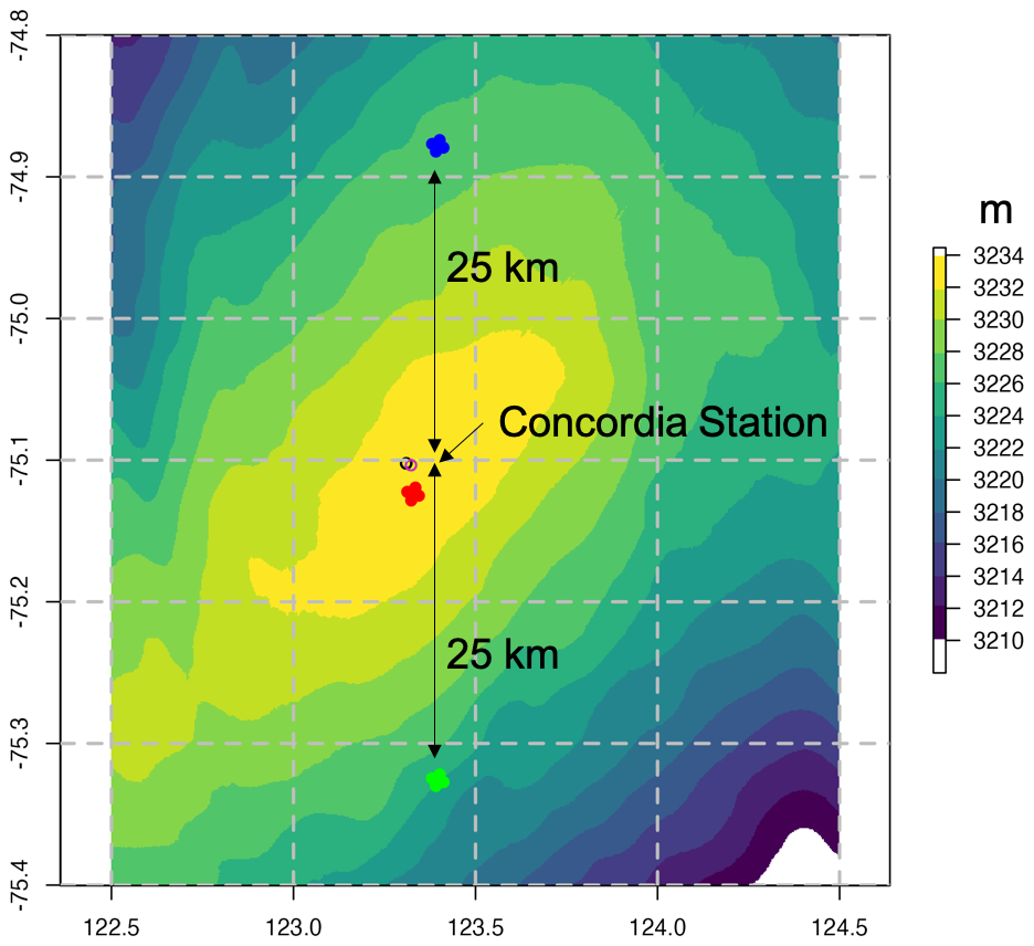 Vittuari L., Zanutta A., Gandolfi S., Martelli, L., Ritz, C., Urbini, S., and Frezzotti, M.: Decadal migration of Dome C inferred by global navigation satellite system measurements, Journal of Glaciology, 71, e117, https://doi.org/10.1017/jog.2025.28, 2025.