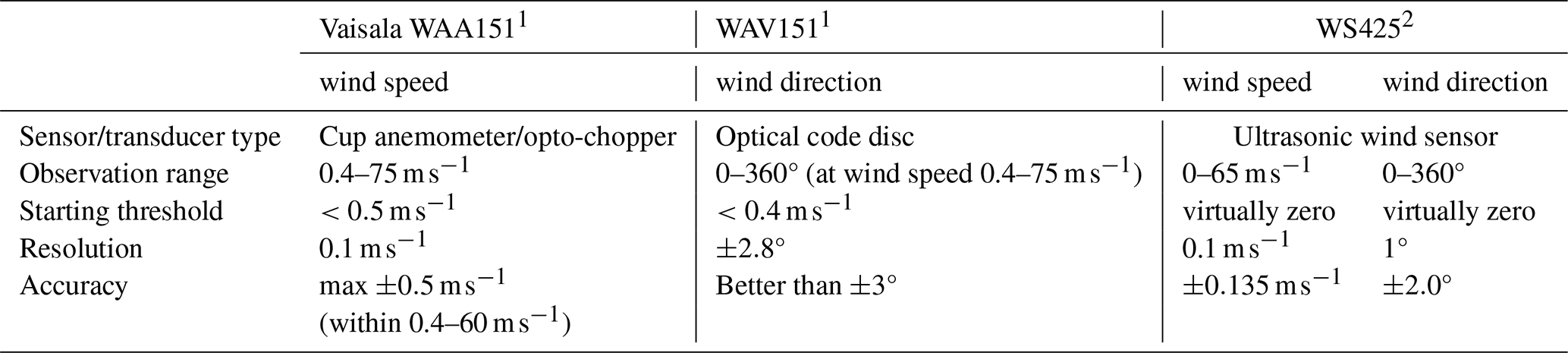 Table 1Description of the wind sensors of the Concordia AWS used in this study.