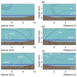 With absorbing boundaries around the model, the seismic data show, in addition to the primary reflections R1 and R2 from the ice–water interface and lake bottom, first- and second-order interlayer multiples within the water layer (R2R1R2 and R2R1R2R1R2 in Fig. 12a). The time lag between these multiples and the primaries is mainly determined by the water-layer thickness.