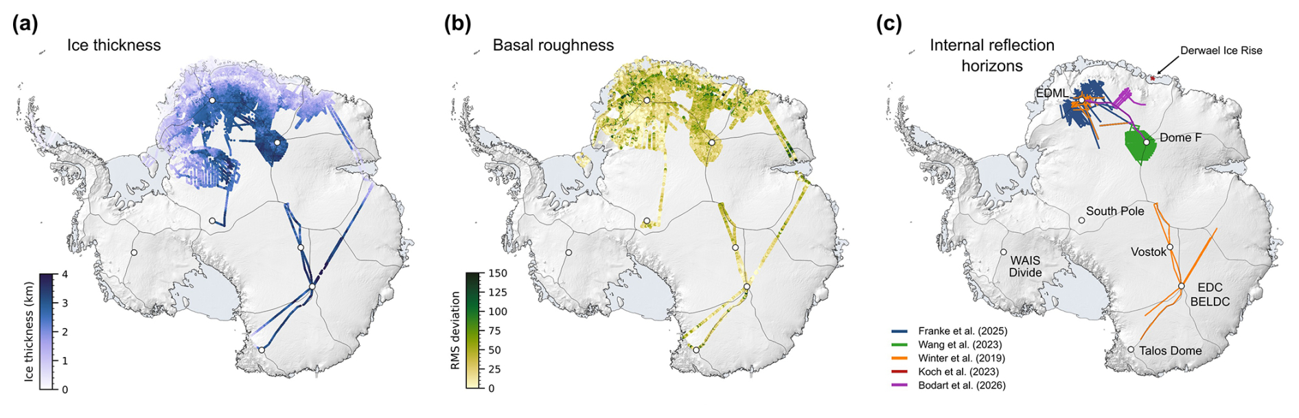 Pritchard, H. D., Fretwell, P. T., Fremand, A. C., Bodart, J. A., Kirkham, J. D., Aitken, A., Bamber, J., Bell, R., Bianchi, C., Bingham, R. G., Blankenship, D. D., Casassa, G., Christianson, K., Conway, H., Corr, H. F. J., Cui, X., Damaske, D., Damm, V., Dorschel, B., Drews, R., Eagles, G., Eisen, O., Eisermann, H., Ferraccioli, F., Field, E., Forsberg, R., Franke, S., Goel, V., Gogineni, S. P., Greenbaum, J., Hills, B., Hindmarsh, R. C. A., Hoffman, A. O., Holschuh, N., Holt, J. W., Humbert, A., Jacobel, R. W., Jansen, D., Jenkins, A., Jokat, W., Jong, L., Jordan, T. A., King, E. C., Kohler, J., Krabill, W., Maton, J., Gillespie, M. K., Langley, K., Lee, J., Leitchenkov, G., Leuschen, C., Luyendyk, B., MacGregor, J. A., MacKie, E., Moholdt, G., Matsuoka, K., Morlighem, M., Mouginot, J., Nitsche, F. O., Nost, O. A., Paden, J., Pattyn, F., Popov, S., Rignot, E., Rippin, D. M., Rivera, A., Roberts, J. L., Ross, N., Ruppel, A., Schroeder, D. M., Siegert, M. J., Smith, A. M., Steinhage, D., Studinger, M., Sun, B., Tabacco, I., Tinto, K. J., Urbini, S., Vaughan, D. G., Wilson, D. S., Young, D. A., and Zirizzotti, A.: Bedmap3 updated ice bed, surface and thickness gridded datasets for Antarctica, Sci. Data, 12, 414, https://doi.org/10.1038/s41597-025-04672-y, 2025. a, b, c, d