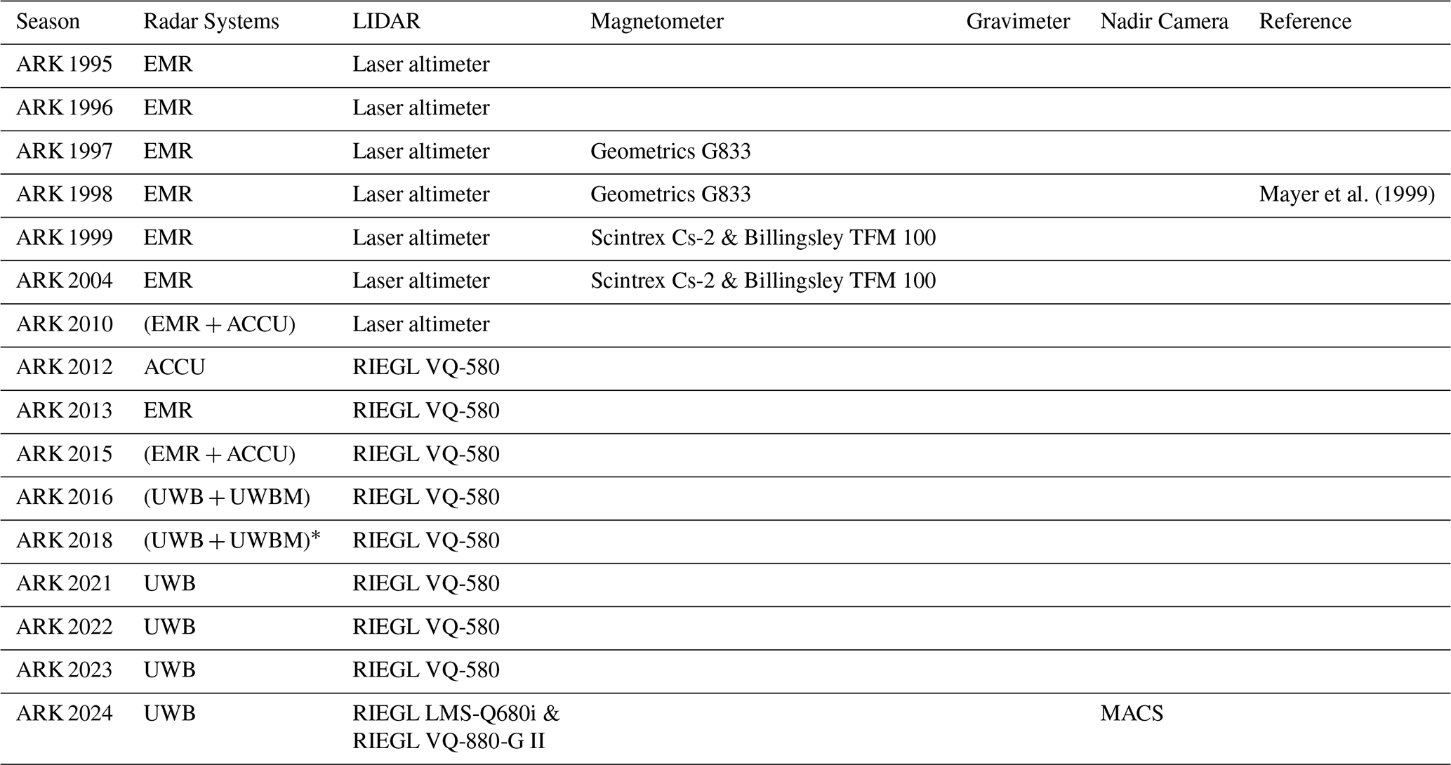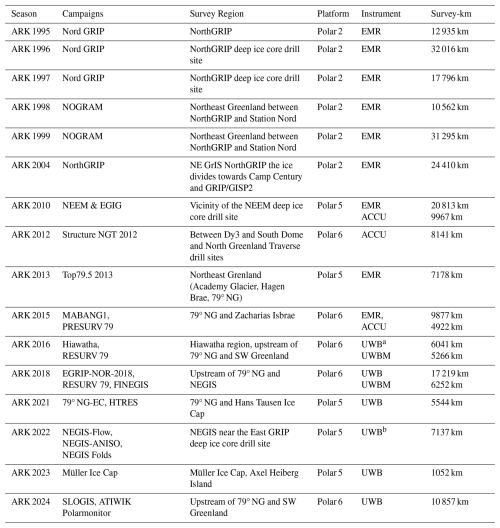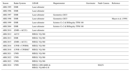 - Appendix A: AWI radar survey seasons in Antarctica and Greenland