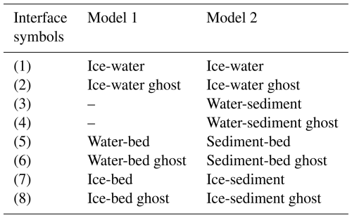 Figure 9a compares the shot gather from seismic data line 21YY (left) with those from the synthetic datasets for Models 1 and 2 (center, right). A prominent reflection at a TWT of 1.17 s is observed in both datasets, corresponding to the glacier–lake interface (1). This reflection results in a high impedance contrast and reverse polarity due to the P-wave velocity difference between glacial ice and water. These features are consistent with previous observations at glacier–lake interfaces (Atre and Bentley, 1993; Brisbourne et al., 2023; Horgan et al., 2012; King et al., 2004; Peters et al., 2007; Woodward et al., 2010). A secondary reflection with normal polarity appears approximately 28 ms after the primary event (2) and is interpreted as a surface ghost reflection. This time delay corresponds to a seismic source depth of approximately 25 m, which is consistent with previous seismic analyses (Brisbourne et al., 2023; Schlegel et al., 2024). That is, assuming an average P-wave velocity of 1800 m s−1 within the top 25 m, the TWT of the ghost reflection matches the expected delay: