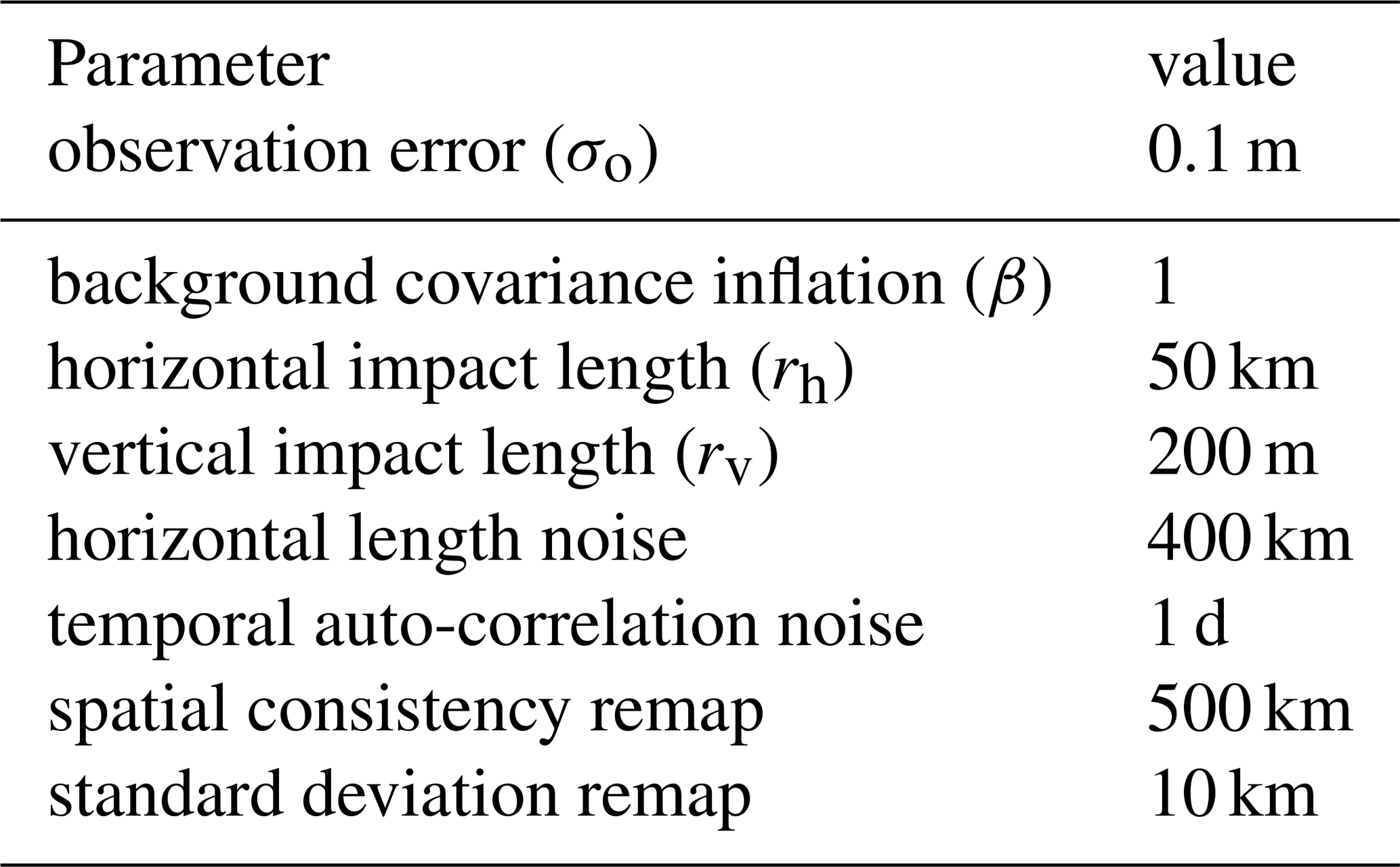 Table 2Data assimilation and ensemble perturbation parameters.