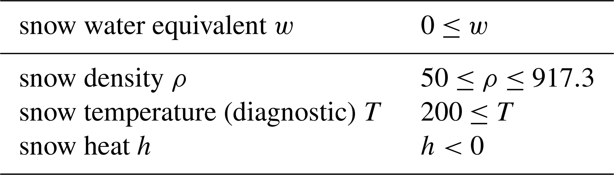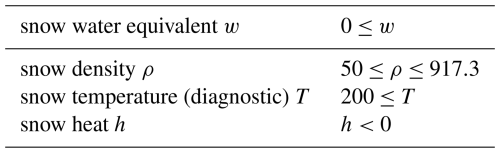 Table 3Valid ranges for snowpack quantities.