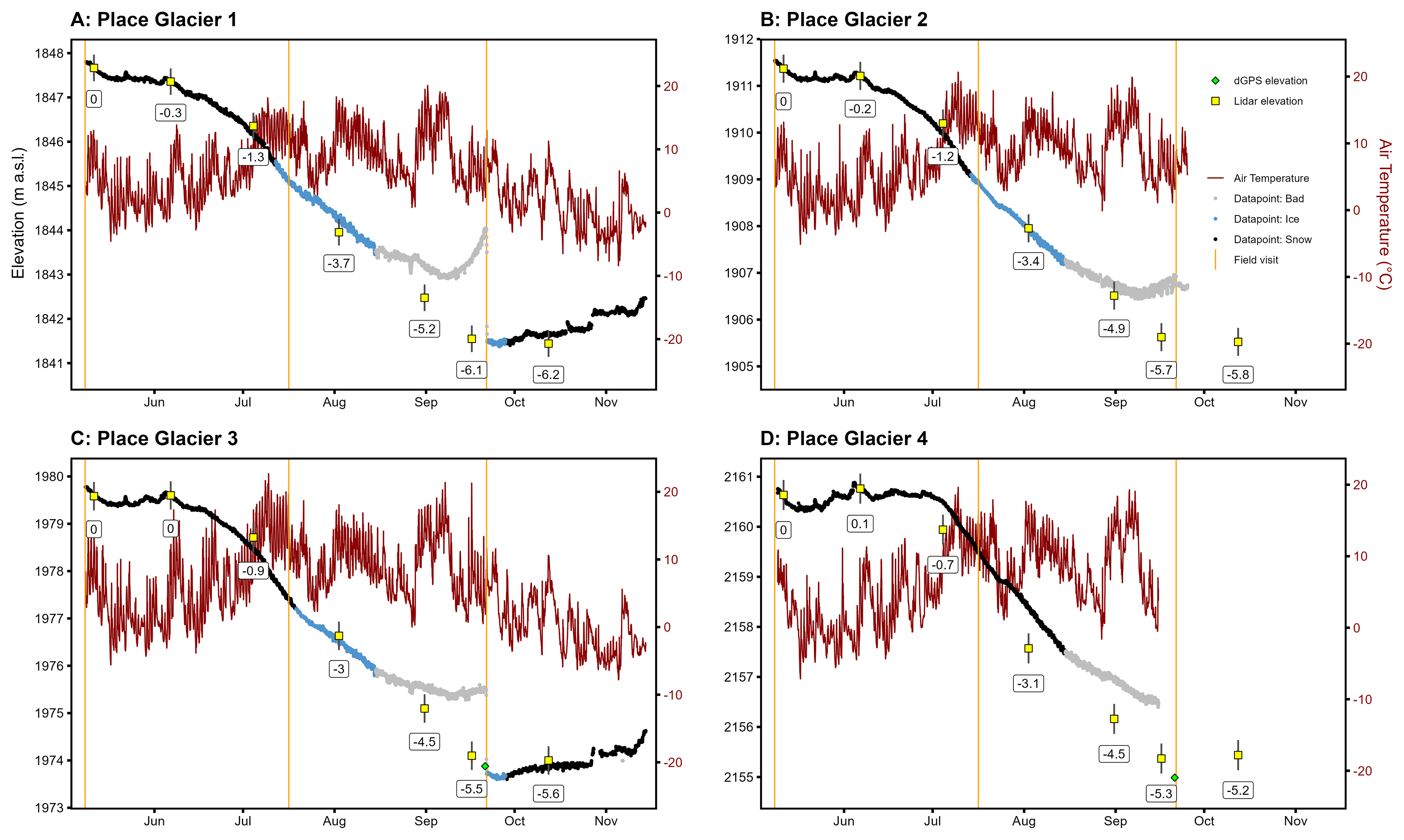 Bevington, A.: Place Glacier Smart Ablation Stake Data (2024), Zenodo [data set], https://doi.org/10.5281/zenodo.18392420, 2026a.