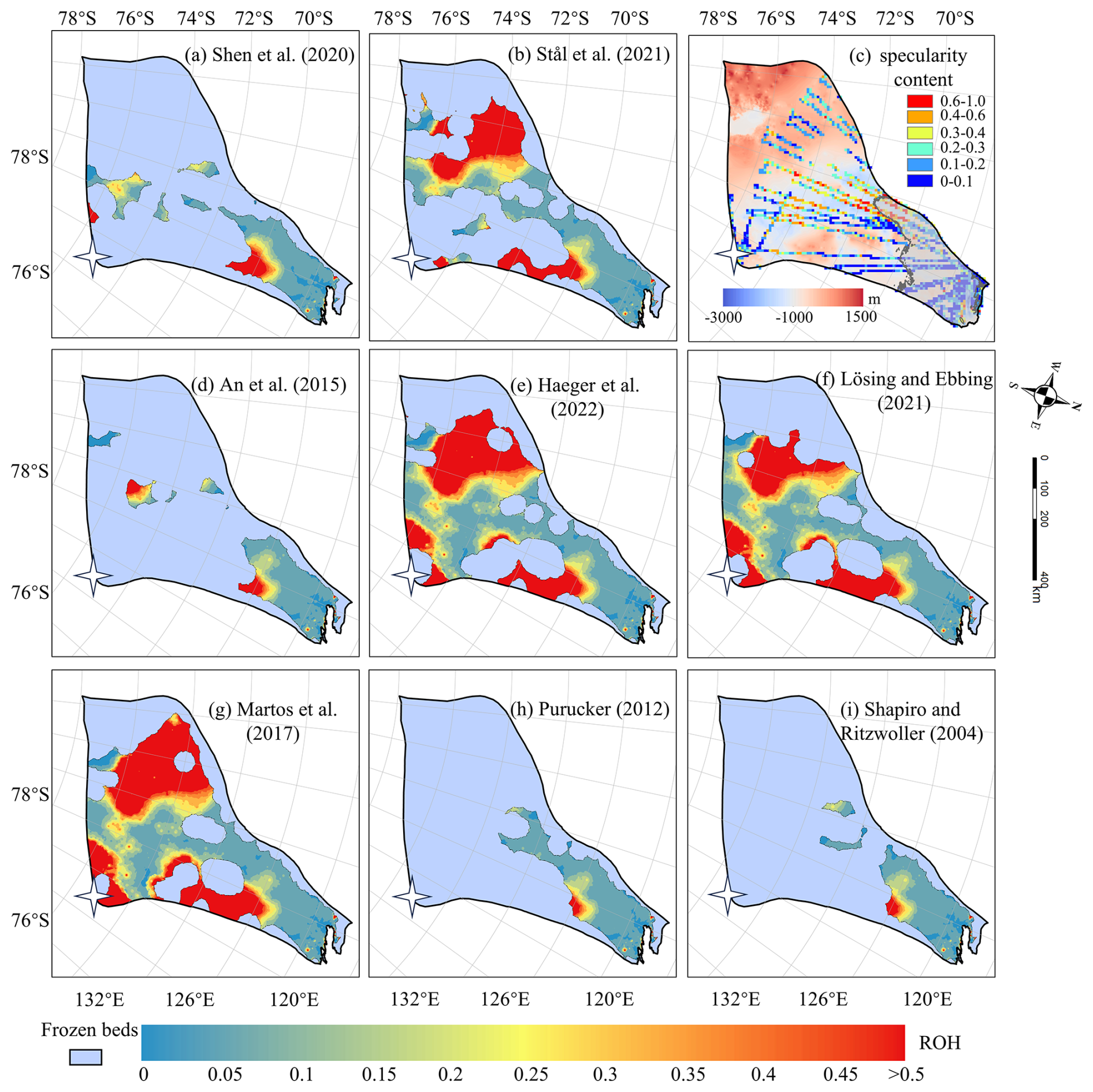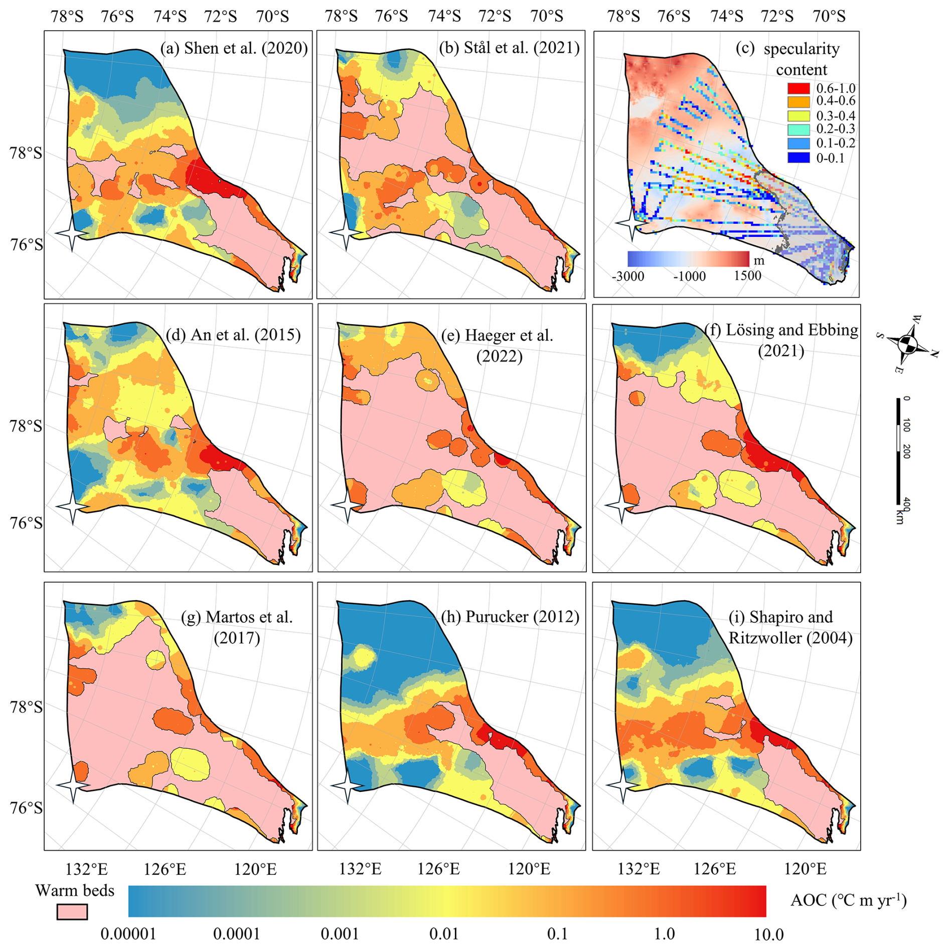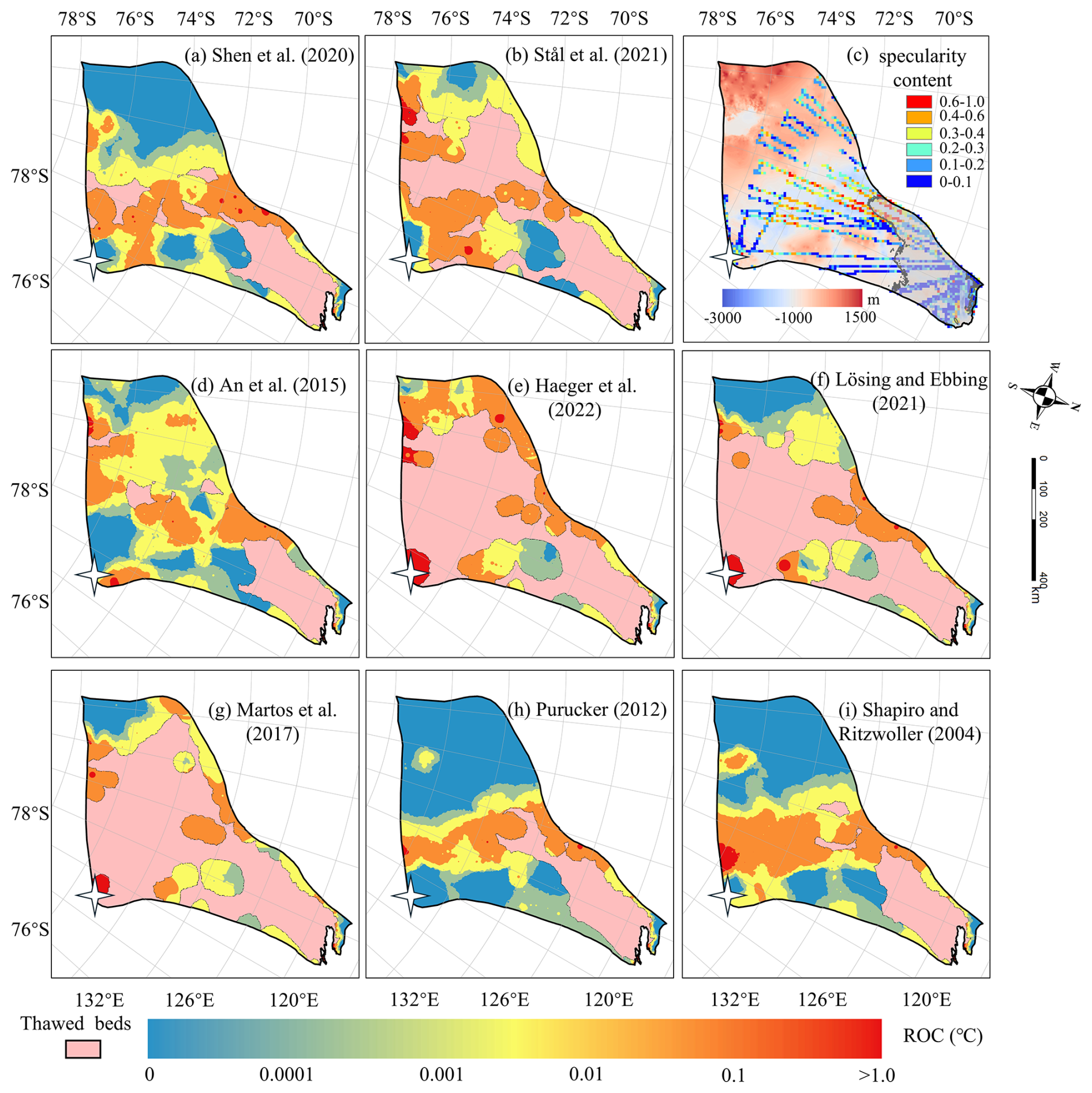 Huang, Y., Zhao, L., Wolovick, M., Ma, Y., and Moore, J. C.: Using specularity content to evaluate eight geothermal heat flow maps of Totten Glacier, The Cryosphere, 18, 103–119, https://doi.org/10.5194/tc-18-103-2024, 2024.